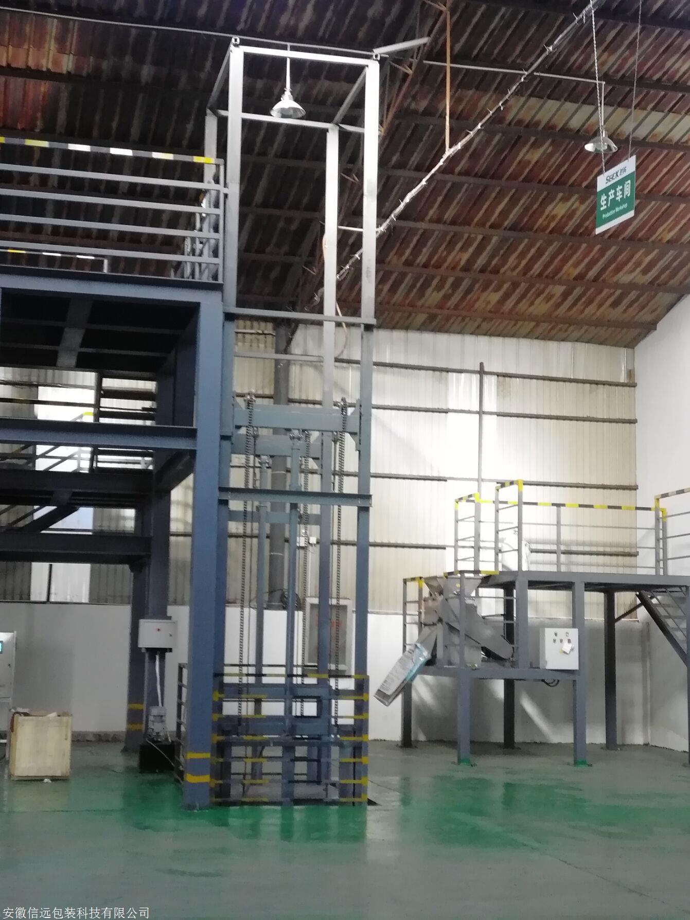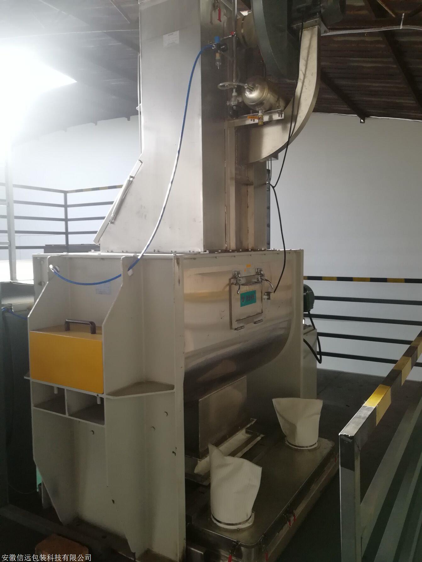 原料经升降机进入投料平台---人工将物料倒入料仓—-脉冲除尘--自动秤重--混合——进入过度料仓--分料器---包装机