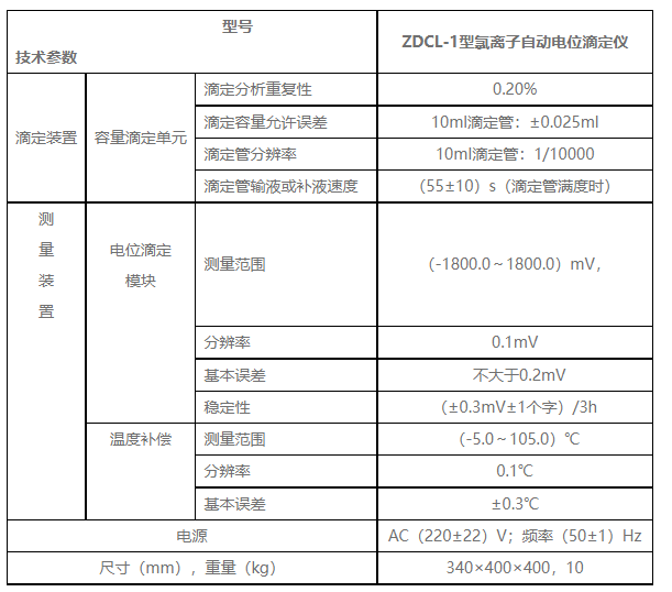 ZDCL-1型氯离子自动电位滴定仪技术参数:
