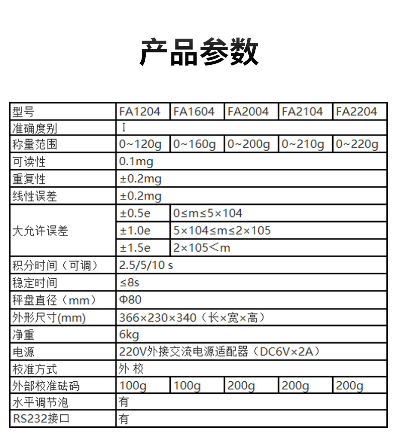 多种单位转换功能,累计称重功能,计数功能,称量值自动提示功能内置下称钩称量,可称量体积较大的样品或铁磁性样品超大的水平调节轮及水平指示气泡,轻松完成天平的水平调节,确保称重结果具备出众的重复性和性全自动故障检测,全量程去皮功能,线性四点校准,超载保护内置RS232通讯接口,可连接电脑或打印机,便于数据记录和处理固体、液体及颗粒的密度测量(可选配密度组件)