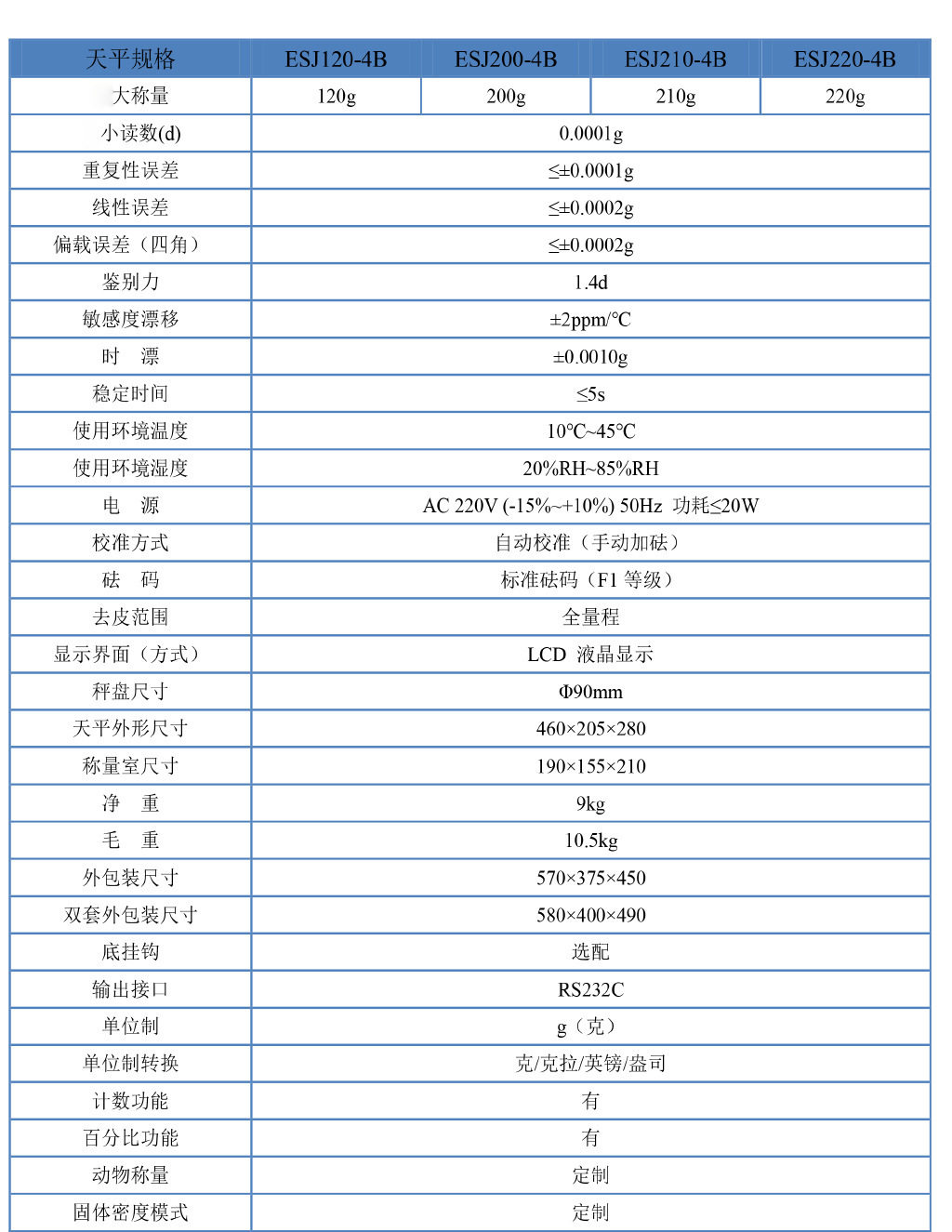 ESJ120-4B电子天平技术参数: