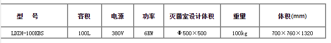 LDZH-100KBS不锈钢立式大容积压力蒸汽灭菌器技术参数: