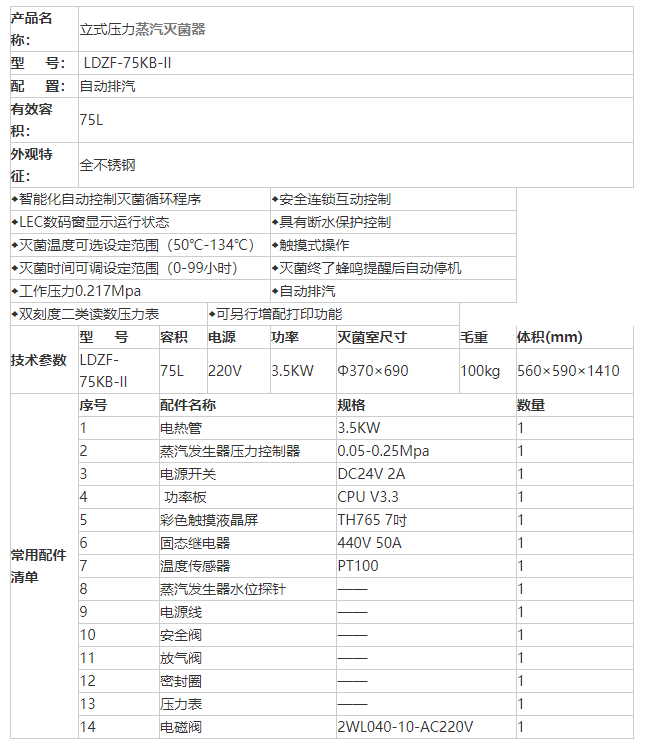 LDZF-75KB-II立式压力蒸汽灭菌器