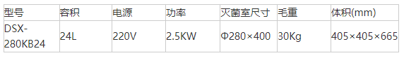DSX-280KB24不锈钢电热蒸汽灭菌器技术参数: