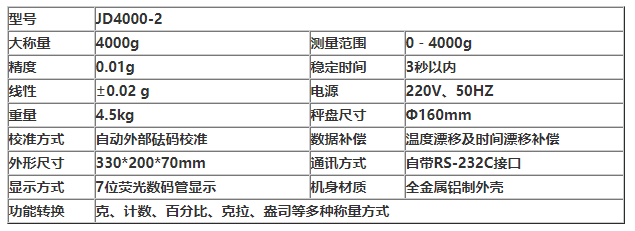 一、JD4000-2电子天平参数表