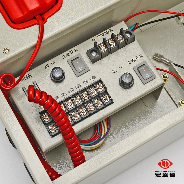 3)本设备采用我司首创的二总线技术,实现了供电与通讯、语音信号在两根线上并行传输,接线时不分极性,方便施工及调试。