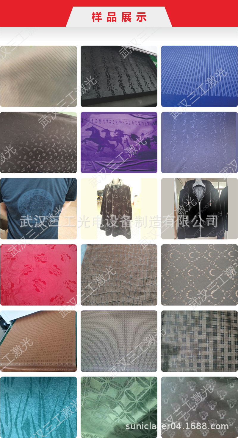 服装面料激光雕花机样品展示: