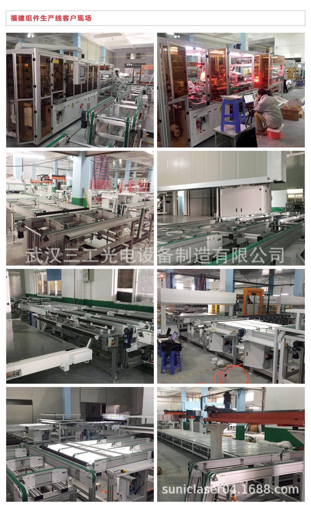 | 单介绍一下常见的太阳能组件生产线布局方法: 直线型生产线。 这是常见的一种生产线布置方式,适合于狭长型厂房,或者在大型厂房中的多条生产线的排列布局。 u型生产线。 它将整个生产工序的开始和结束位置放在一个地点,适合于直线布置无法展开的厂房,如正方形的厂房等。 武汉三工自动化生产线解决方案解决客户生产中的每一个环节,减少操作人员,降低占地面积。让客户在增加产量的同时,为客户创造有竞争力的成本优势。 产线方案介绍 整个系统结构图分为现场光伏生产线集中管理系统及运营中心两部分。 现场生产线管理系统主要是由传动系统、控制系统(组态软件+PLC)、视频采集等设备,完成的是本地生产线设备生产运行监测和控制功能,并且为运营中心提供自动化数据和视频数据。 运营中心由设备远程运营维护平台系统、防火墙、IO服务器、数据记录服务器、消息服务器、HMI/WEB工作站、工程师站及硬件维护站等设备组成。完成对分散在各地的光伏生产线数据的采集/记录及展现、视频数据的采集及展现、数据分析、报警和事件消息的显示/存储/查看、WEB发布、移动设备监控服务等等,实现光伏生产线的远程运营与维护。 我司生产的组件生产线设备包括:输送机、组件排版机、上料机、EL检测机(包含前及终检)、IV检测机、翻转机、自动打胶机、自动修边机、自动组框机、堆栈机、固化线、分选码垛机及相关光伏组件检测实验等设备。该方案设备先进、自动化程度高,位于行业内先进水平。同时流水线布局科学、合理、美观,性价比较高,操作维护方便。
