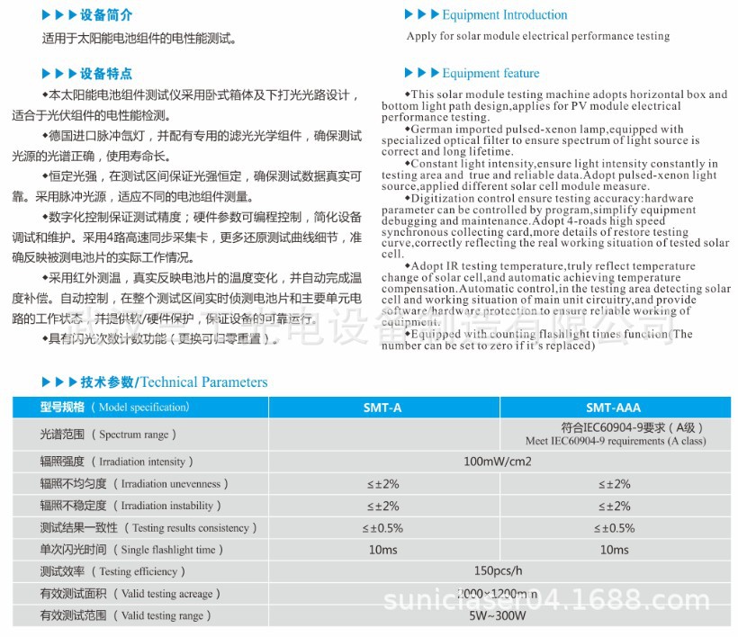 ◆本太阳能电池组件测试仪采用卧式箱体及下打光光路设计,适合于光伏组件的电性能检测。