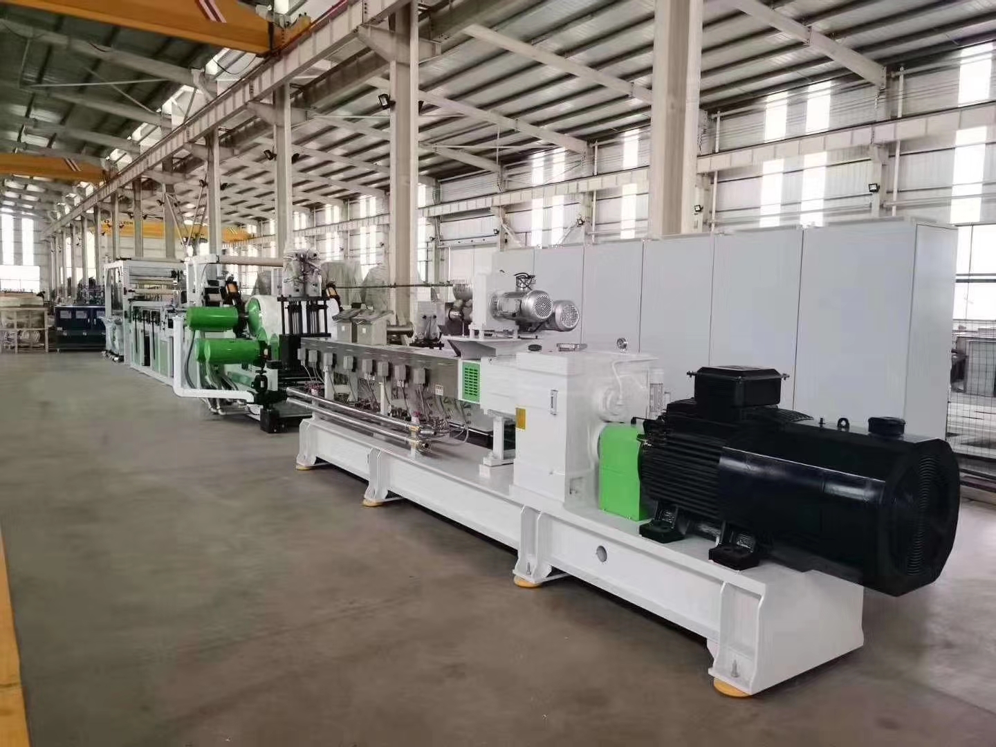 PET/PLA,片材生产线: 金纬推出的双螺杆免干燥排气型PET/PL材生产线具有低能耗、工艺简单,设备使用维护方便 的特点。其特有的螺杆组合结构有效的减少了PET/PLA树脂的粘度降,对称式薄壁型辊筒提高了冷却效率同时提升了产能和片 材品质,多组分喂料装置可合理的控制新料、回料、色母等的比例,所生产的片材可用于吸塑印刷包装等,域。