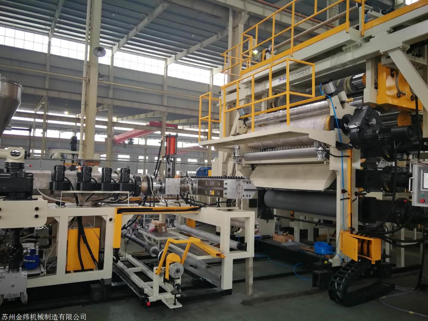 适合多种物料的生产,包括PVC、TPO、PE等防水卷材;适合多种产品结构形式的防水卷材,包括: 均质卷材(代号H):不采用内增强材料或背衬材料的防水卷材; 带纤维背衬卷材(代号L):用织物如聚酯无纺布等复合在卷材下表面的防水卷材; 内增强卷材(代号P):用聚酯网格布在卷材中间增强的防水卷材; 内增强卷材(代号G):用玻纤网格布在卷材中间增强的防水卷材;