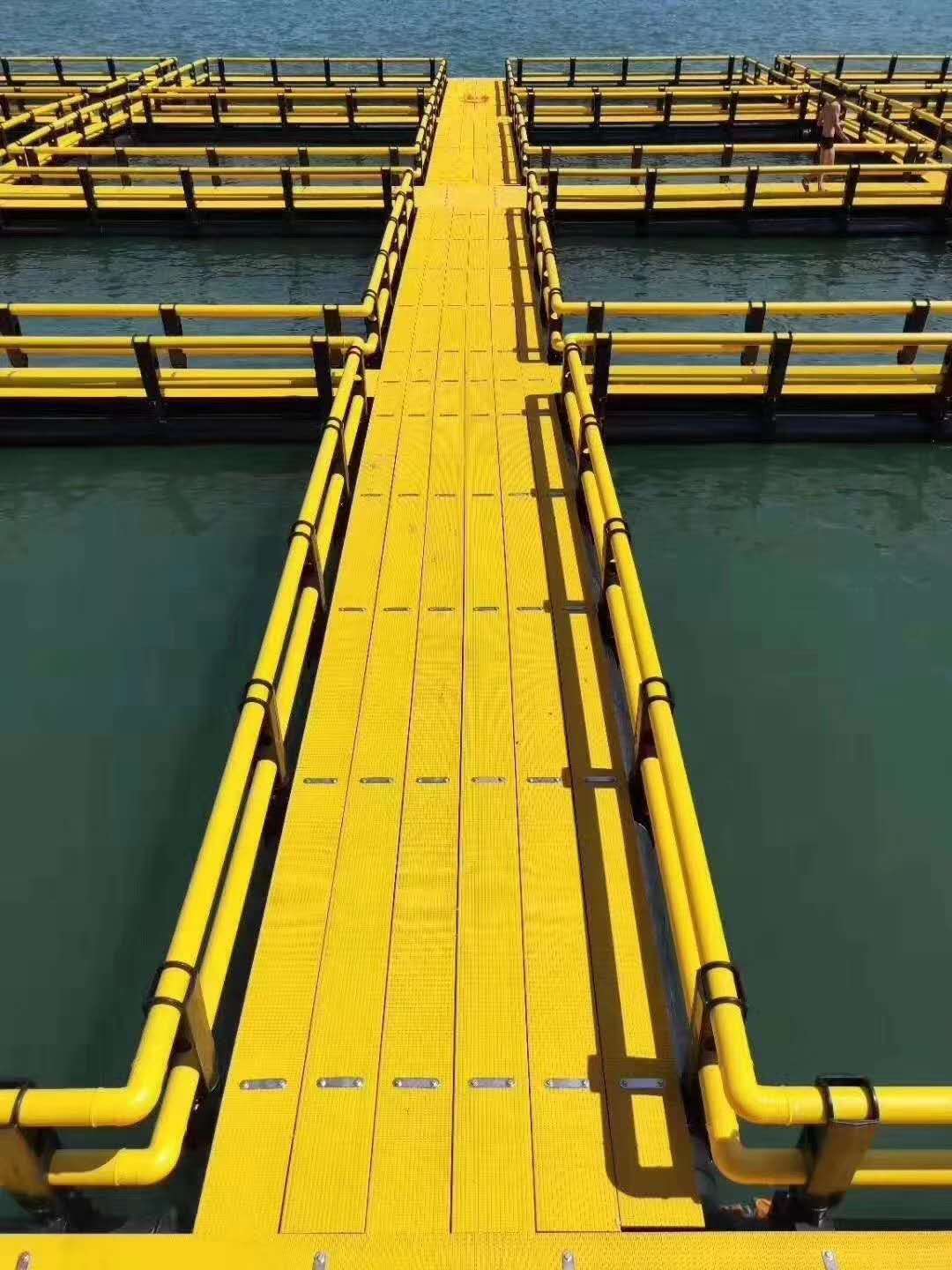 海洋踏板,是以高密度聚乙烯(HDPE,含量≥95%)为主要原料,通过挤出工艺加工而成;可根据实际需求或工程设计,在其他金属或塑胶配件的辅助下进行连接、固定、组合、安装成各式形状,用于码头、浮桥、平台等场所进行水陆连接的漂浮于水面上的产品。