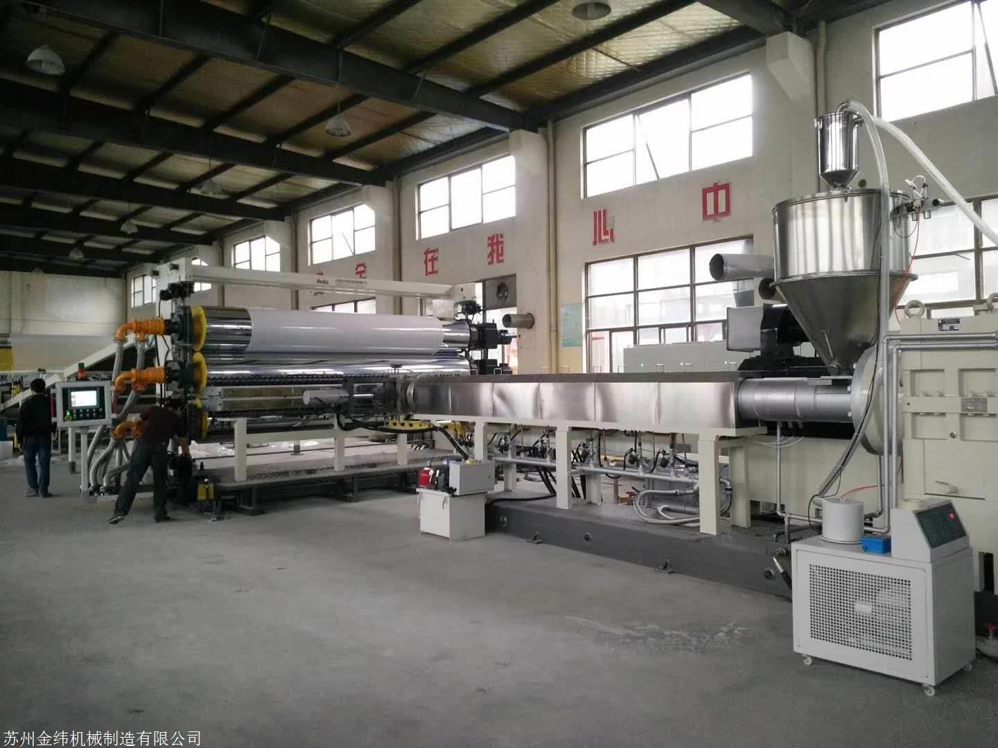 苏州金纬机械有限公司可以提供挤出机直径为250mm的大型单螺杆挤出机,模具宽度84m及宽度85m的立斜式三辊压光机组成的8m防水卷材土工膜生产线 TPO防水卷材,是由热塑性聚烯烃加入抗氧剂、防老剂、软化剂等挤出成型的,中间有聚酯网布增强层,表面附以织物纤维、铝膜而制成的新型防水卷材。TPO防水卷材具有优异的耐候性和柔韧度。主要各种屋面、地下室、隧道等建筑用防水,域。 PVC、EVA、PE等防水卷材,产品工业与建筑业的各种屋面防水,地下室,水库,堤坝,公路隧道,铁路隧道,防空洞,粮库,垃圾厂,废水处理等建筑防水工程。 在这样的情况下,大力发展防水卷材设备,降低能耗,提高产能,在原有的基础上,设备的稳定性不断加强,在客户现场,得到了客户的认可。 目前我司的防水卷材设备主要有PVC防水卷材设备、HDPE防水卷材设备、EVA防水卷材设备、TPO防水卷材设备等,公司根据客户的要求来定制设备,,大的便利了客户。产品适用:工业与民用建筑的屋面防水,包括种植屋面、平屋面、坡屋面、建筑物地下防水:包括水库、堤坝、水池防水、隧
