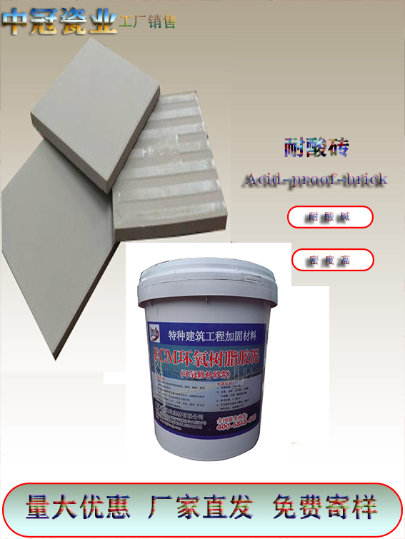【中冠耐酸砖】使用说明:一般环氧树脂,耐酸胶泥、耐酸水泥铺贴,铺贴时可根据上述生产厂家产品使用说明书进行施工;用草酸清洗混凝土表面,达到酸碱中和;工业瓷耐酸砖,间缝宽度约8—10mm,间缝深度与砖厚相平为宜,以防泄露;铺贴完毕后应用槽酸冲刷表面,以助于更加牢固。