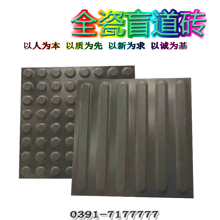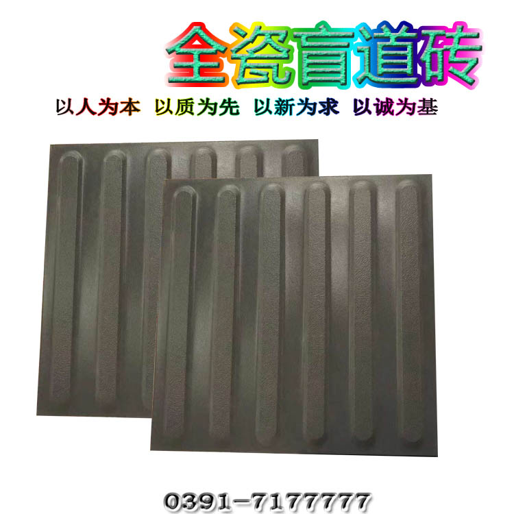 众光全瓷盲道砖因为生产的独特与严格,我们的盲道砖具有耐磨度高、抗低温、抗冲击、使用寿命长等特点。作为建筑装饰材料,以其光洁靓丽、美观大方、无色差、不风华、无放射污染,是一种绿色环保建材,而成为大理石花岗岩的替代产品。我们的盲道砖是严格按照国家标准GB/T3810来严格要求生产,甚至于超越国家标准,中冠盲道砖采用了独特的工艺配方,取代了石材、水泥、金属、塑胶等盲道材料,气色泽醒目、美观大方。全瓷盲道砖的施工过程也比较简便,使用市面上常用的混凝土粘黏即可,省时方便。