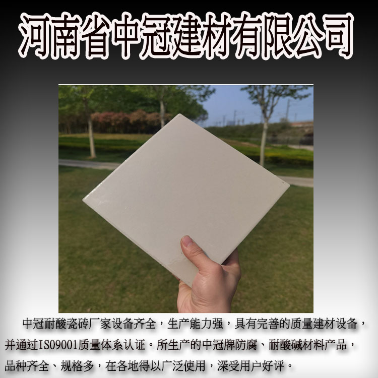河南省中冠建材有限公司在防腐行业耐酸砖市场已经相对较稳定,现在各行各业竞争也是越来越激烈,尤其是*近几年市场上出现的耐酸砖品牌越来越多,各种耐酸砖生产厂家和各种规格型号的耐酸砖在市场上也是越来越多,那么令许多消费者头疼的一个问题就来了,现在市场上这么多令人眼花缭乱的耐酸砖品牌,到底哪个才是真正让人放心的?哪个才是质量和服务都有保障的?那么选择耐酸砖的标准又是什么呢?