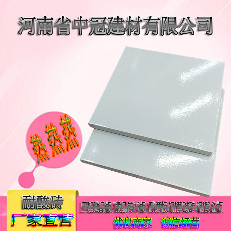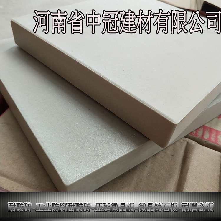 中冠建材有限公司以石英、长石、粘土为主要原料,经窑炉高温烧制而成的耐火防腐材料。中冠厂家生产的耐酸砖分为素面与釉面两种;素面的具有超强的防滑能力。釉面的表面光滑,易清洗。只是面上不同,质量上是完全相同的都是高质量的耐火耐酸防腐材料。中冠耐酸砖具有耐酸碱度高、耐温度高、吸水率低、在常温下不易**,不易被介质污染等性能对于温氯盐水、**、、等酸类及在常温下的任何浓度的碱类,均有优良的抗腐作用。里面含有二**硅70%以上,在化学工业中多应用于砌酸沟、酸井、贮酸库及载酸大的受冲击地面。中冠全瓷耐酸砖在石油、化工、冶金、电力、化纤、造纸、制药、化肥、食品、乳业、果汁、电镀室以及塔、池、罐、槽等防腐工程企业被广泛应用。并在地下污水道和露天地面等工作都可发挥其耐腐蚀力。中冠全瓷耐酸砖的个性性能均达*****标准,甚至于超越*****标准。