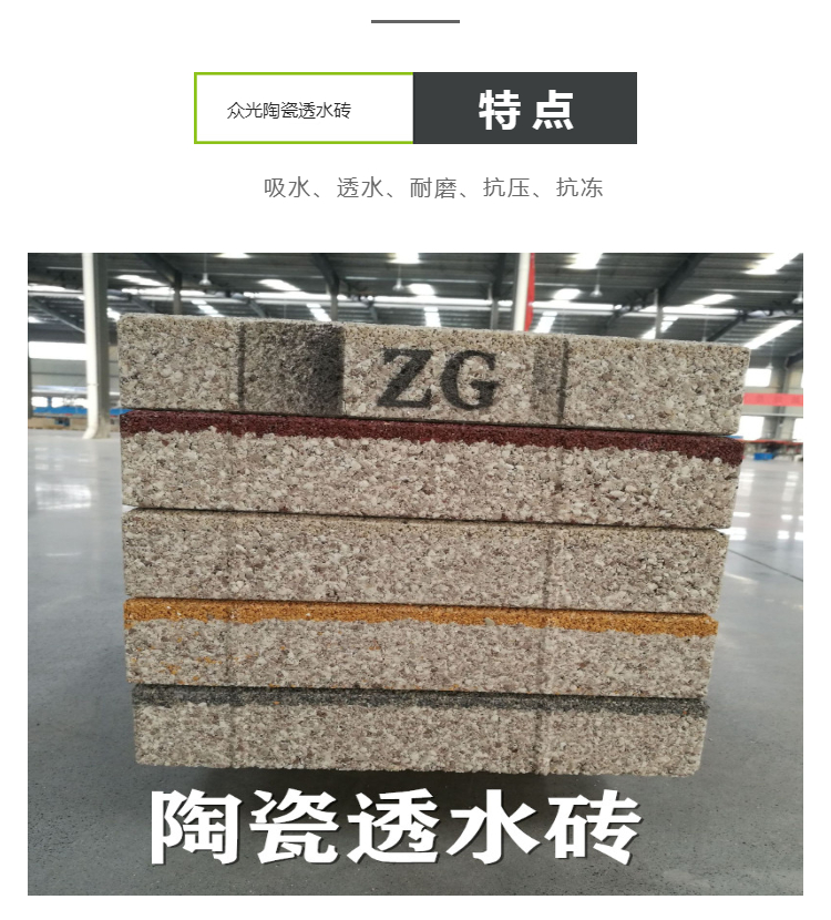 【中冠透水砖】是理想的路面铺设材料,可广泛用于公园、广场、人行道、住宅区等地的路面,调节人们起居的温湿度{hottag}环境,维护地表的生态平衡的功能。