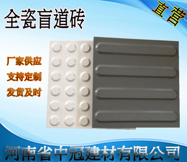 全瓷盲道砖是目前市场上质量优良的盲道砖产品。因为它摒弃了水泥盲道砖透水率高、不抗冻以及塑胶盲道砖抗压强度不足的缺点。