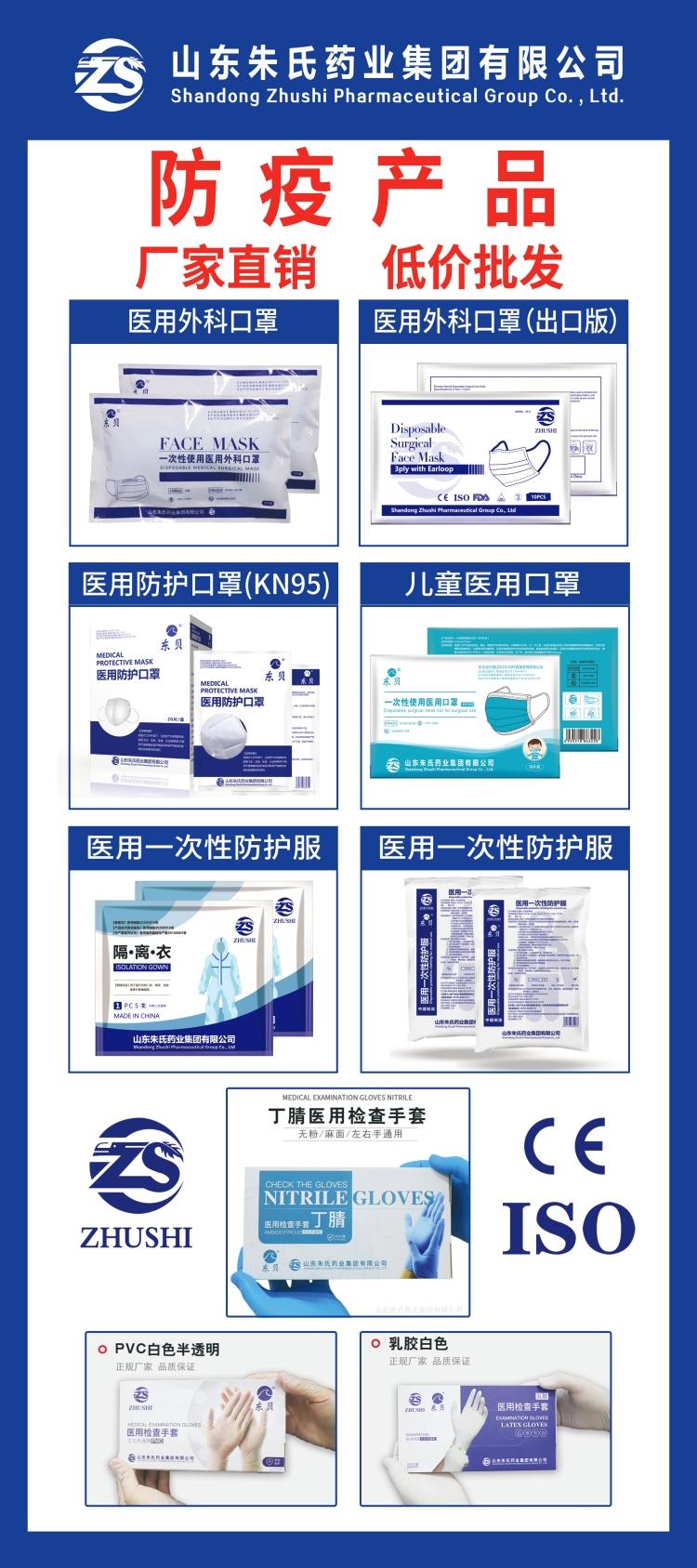 山东朱氏药业集团有限公司是一家生产防疫物资的生产厂家,我们提供医用防护服、隔离衣、医用口罩、医用隔离眼罩、医用检查手套、医用帽、医用隔离鞋套、医用隔离面罩、额温枪、免洗手消毒凝胶、消毒酒精等产品,价格优惠、质量有保证,有需要的可以与我们联系!