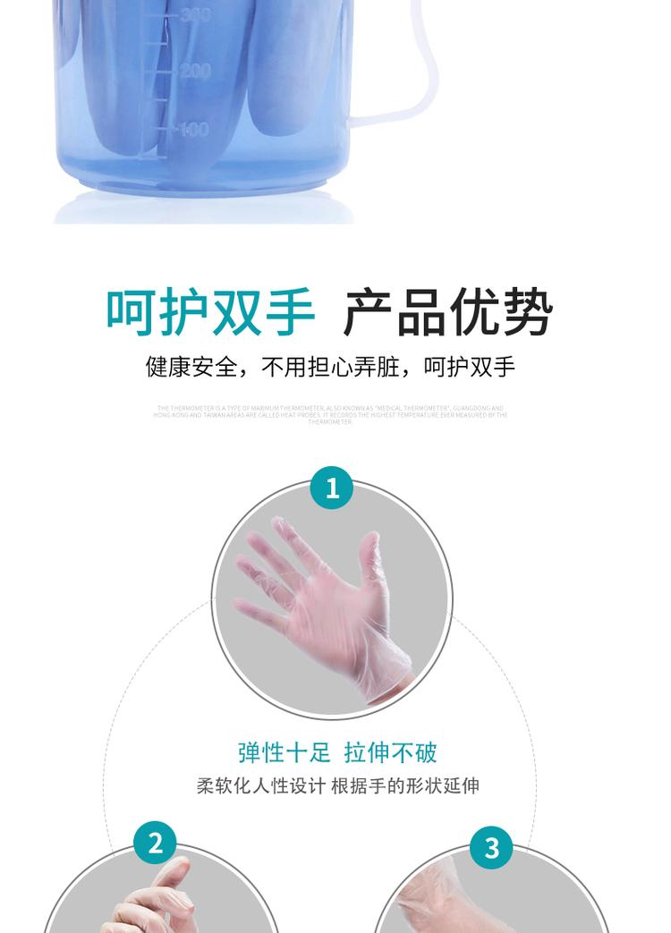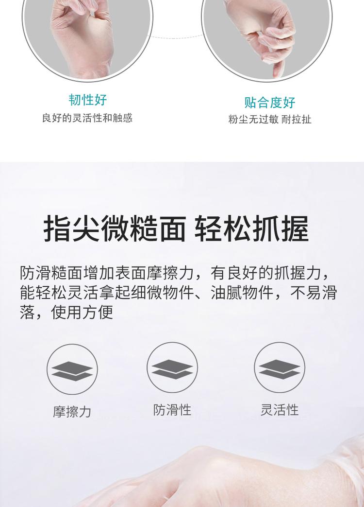 根据使用材料不同分为:丁腈、乳胶、PVC、PE、TPE,本产品不分左右手,