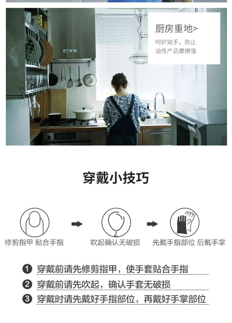 本产品不分左右手,请选择适合本人手型规格的手套; 穿戴手套时,不得戴戒指或其他饰物,注意修剪指甲; 本产品限一次性使用;使用后的产品请按医疗垃圾处理,防止病菌对环境污染; 严禁阳光或紫外线等强烈光线直接照射。