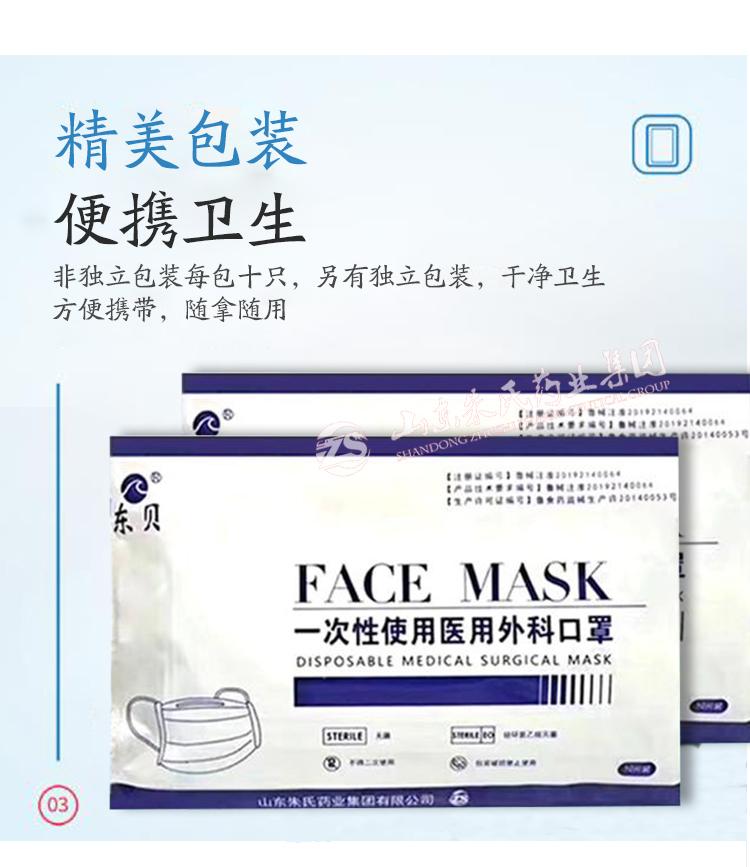 东贝医用外科口罩 一次性口罩 灭菌 蓝色 耳戴式 10只 1包