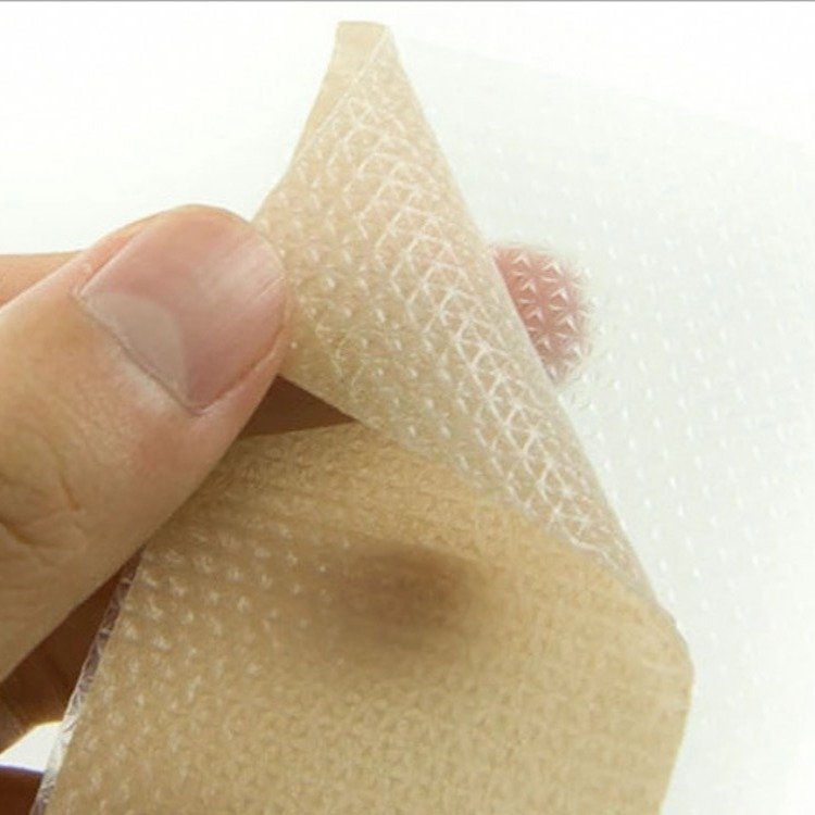 去掉隔离层,将有粘性的一面贴在疤痕处,紧密贴敷; |