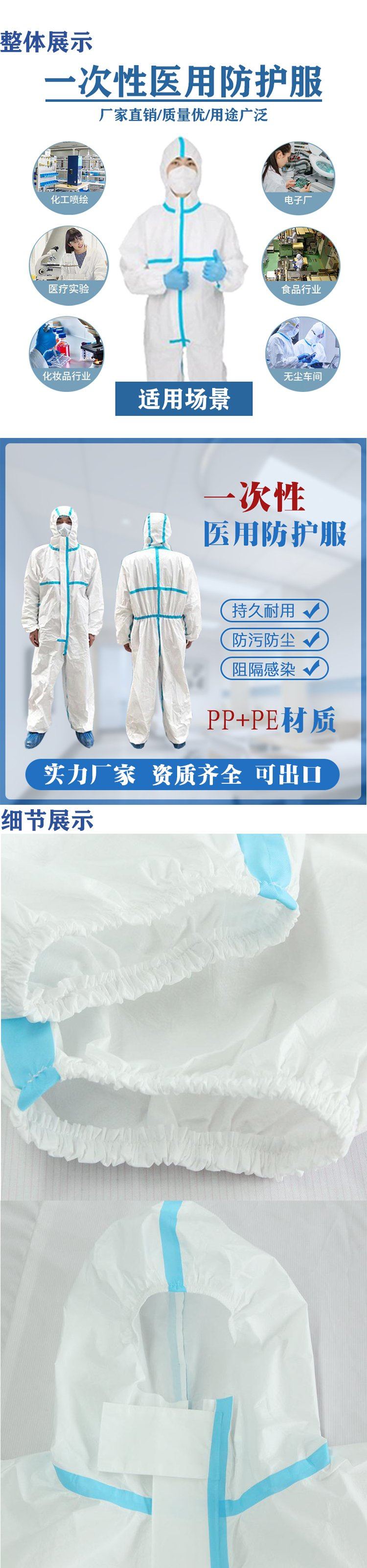 东贝一次性使用医用防护服 带帽连体式防护服带胶条
