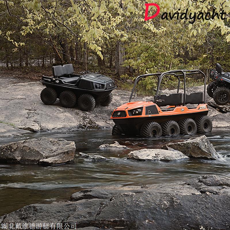“戴维德”水陆两栖车具备8轮(6轮)驱动, 强劲安静引擎,高效的ADMIRAL传输系统,高速操控性能和很好复杂地形适应能力,在复杂路况和水面现场都能够提供很好的平衡。强劲且低噪音冷却,可提供了高效率的处理能力和很好的路面行驶性能。选配的橡胶履带可以实现松软路面或雪地的通顺牵引力。