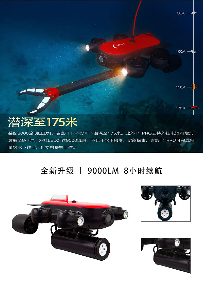 ~水下搜寻、勘测、抓取物件、救援、拍摄、考古、地理水温研究、海底直播等先进功能