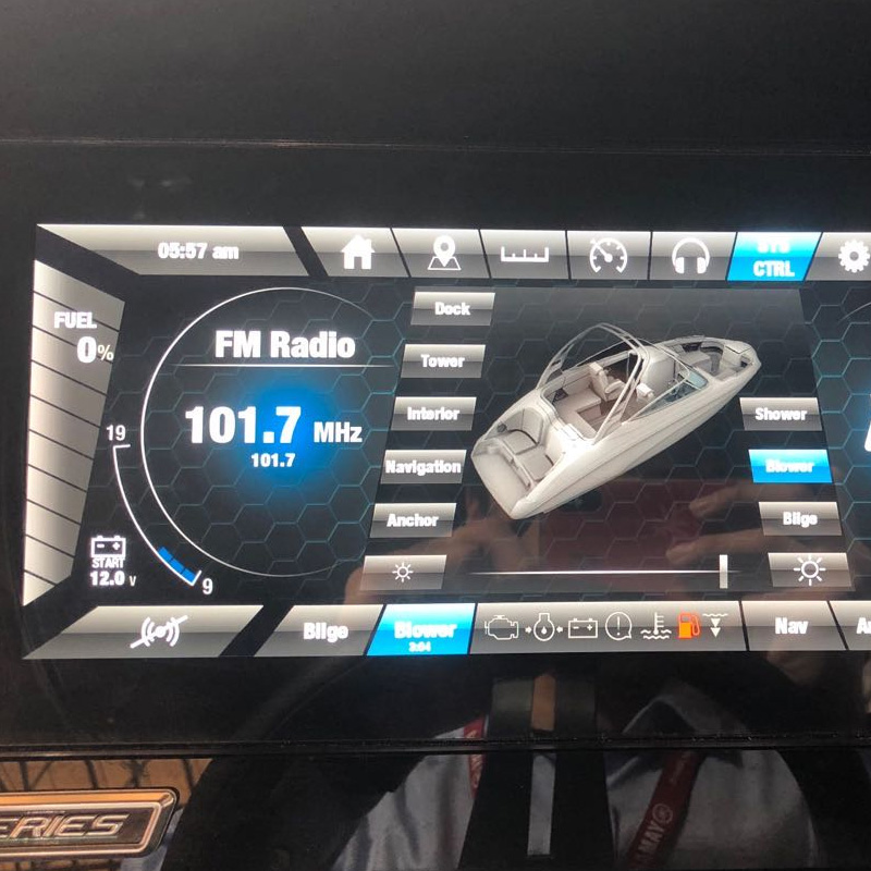 燃油消耗速度(平均)/转速计/里程计(跑步仪)/计时表/燃油表(显示剩余量)/过热警告/电池电压显示/深度计(浅滩报警)/水温计/警笛/航海灯操作/各种指示灯操作/音频操作/舱底和鼓风机操作/淋浴操作/船舶的经纬度/单位设置更改/时钟