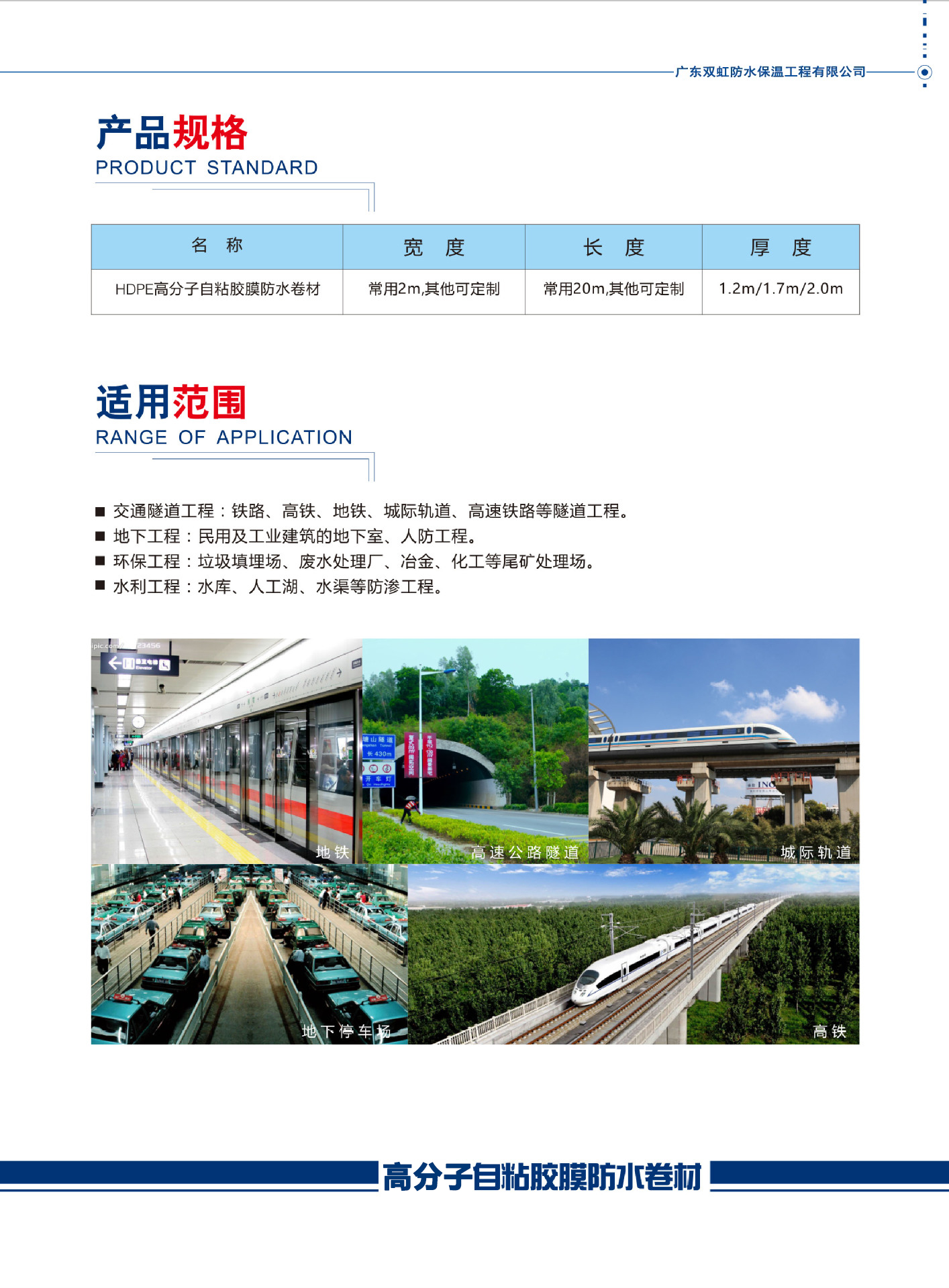 高分子自粘胶膜防水卷材是专门针对地下防水难点设计的,因此它只适用于地下或者隧道防水工程中,而不推荐用于建筑物出地面立墙或者屋面防水。