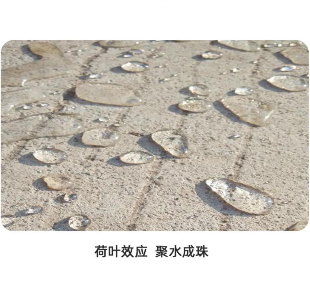 5、施工设备:大面积施工建议使用无气喷涂设备,施工效率高,可以减少原材料的损耗;小面积施工可使用刷子或刮刀;施工时如突然下雨,立即停止施工,并仔细盖好已施工构件,防止因淋雨造成硅烷活性成分在固化前流失,影响施工效果。
