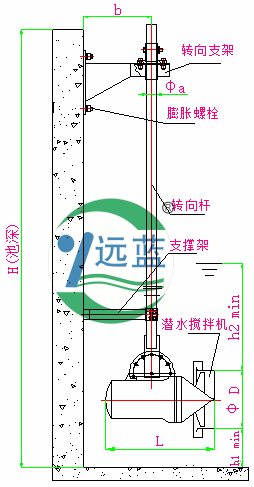 注:1)潜水搅拌机的专用安装系统,可在无需排除池中污水的情况下,能快速安装和拆卸搅拌机;