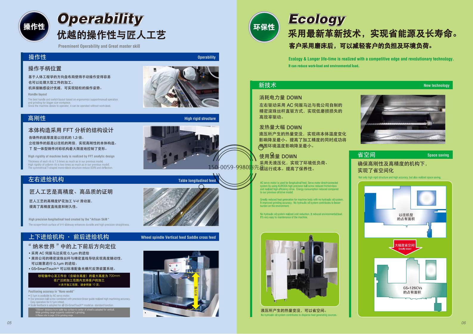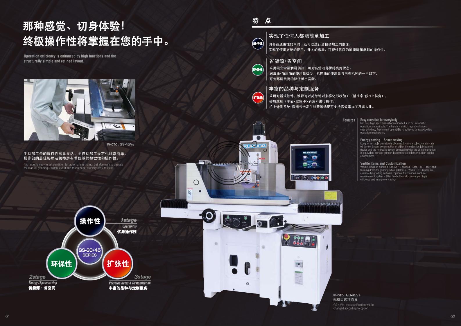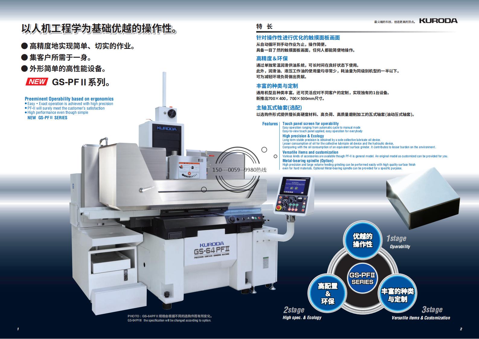 - 精度高:可达到0.002mm的磨削精度,平面度、直角度、pin值(步距)都保持在0.002mm。