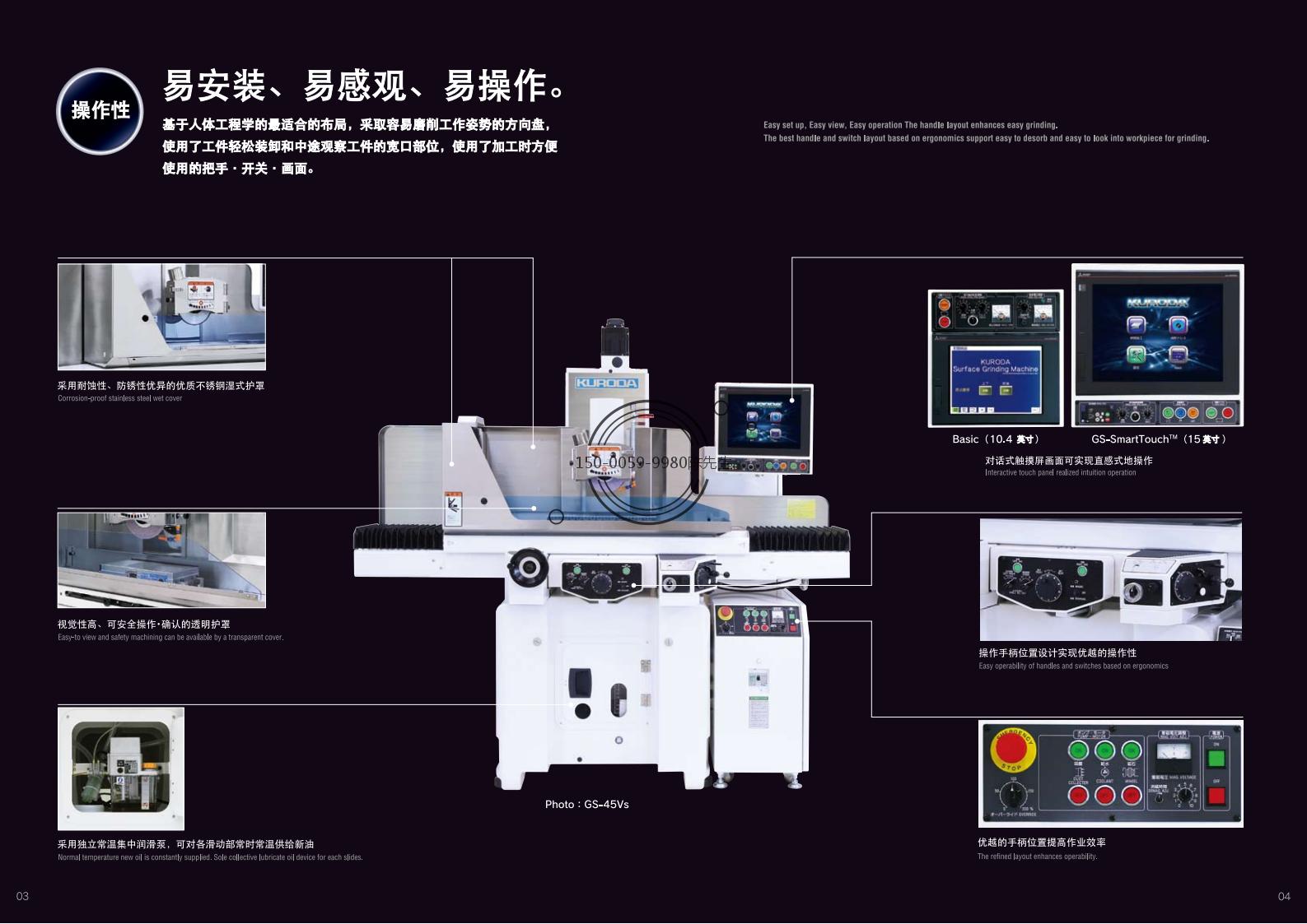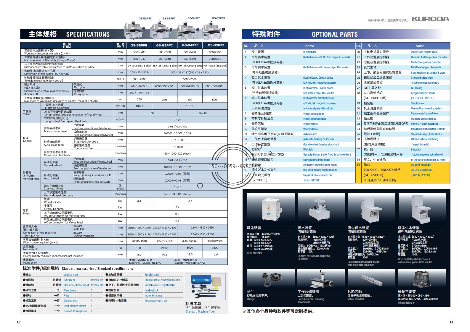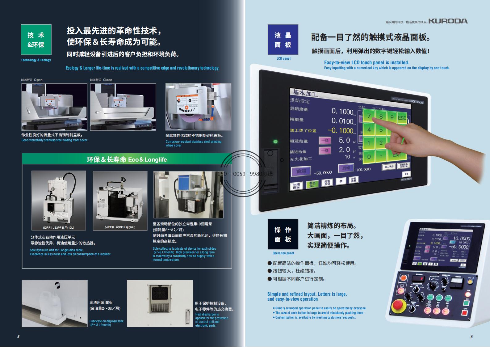 - 精度高:可达到0.002mm的磨削精度,平面度、直角度、pin值(步距)都保持在0.002mm。