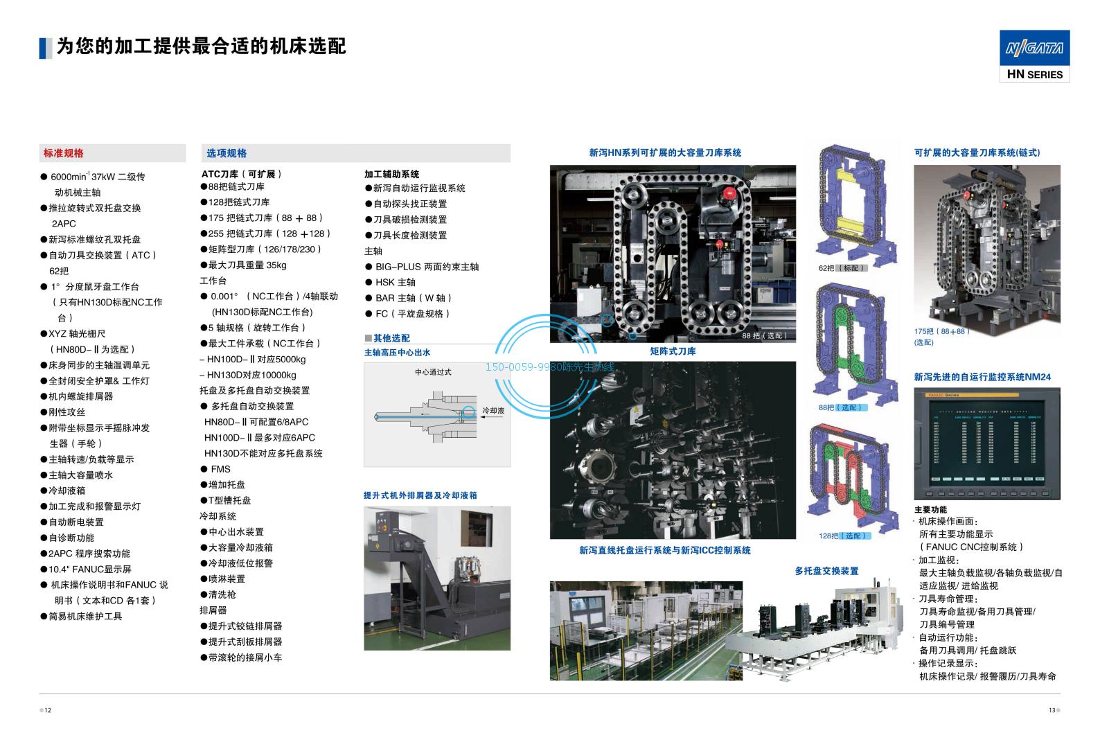 新泻机械科技从事机床事业的研发已拥有超过百年的辉煌历史,作为卧式加工中心的机床厂商,已向中国市场提供近两千台的交货业绩,应用到各类行业,现在新泻拥有从托盘尺寸400*400mm到1600*1600mm的各类型卧式加工中心,产品主要有一下系列,HN800S/HN1000S/HN1250S/HN1600S/HN800SBAR/HN1000SBAR/HN1250SBAR/HN1600SBAR/