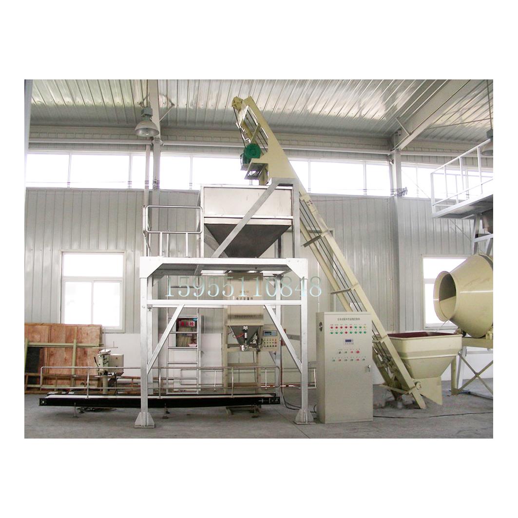在国内现已有多家肥业公司使用,并得到广泛认可。设备工艺先进、自动化程度高、操作方便、产量大、占地面积小、造价相对较低,充分考虑了上料的劳动强度、设备的防腐蚀,PLC全自动控制,节约人员、设备使用寿命长,具有极高的性价比。 BB肥包装样品展示 设备组成部分 自动配肥系统 提升搅拌系统 定量包装系统 总控制柜及生产线总控系统 设备组成及主要功能、性能特点 自动配肥系统 功能:按照规定的重量配比,自动完成几种原料的配料。配料系统按照设定的次序和重量,依次完成各物料的配料。几种物料配料完成,得到总控系统放料信号,秤斗开关门机构动作,打开料门放料;物料排出干净,自动关闭料门,开始下一配料过程。 有手动/自动工作状态选择,方便设备的调试与清理。每个储料仓、秤斗均有手动按钮,可在手动状态下打开、关闭。 提升搅拌系统 包括: 1.爬斗式提升机。 2.肥料混合机、接料口。配好的肥料自动卸入混合机,总控系统自动控制混合、出料过程,混合时间、出料时间的长短均可数字设定,确保混合均匀。有手动/自动工作状态选择,方便设备的调试与清理。 定量包装系统 功能:将混合好的肥料自动卸至包装机料仓,包装秤按照设定的重量将物料充填入包装袋,经输送机送往缝包机工位,自动缝包,完成定量包装过程。 总控制柜及生产线总控系统 实现整个配料包装线的自动化,保证其连续、、稳定的工作。 产品特点: 地面上料:原料运输方便快捷,无需上料提升机,投料工少,操作安全。 产量大:产量为每小时8T~30T,有多种规格工选择,充分解决了BB肥因季节性集中要料的矛盾。 占地空间小:配料系统下置,生产线结构紧凑、占地面积小,高度低。 全自动:电脑控制,全自动化生产,提高了功效,降低了劳动强度。 精度高:配料、包装均为电子称重,配比控制严格。 工艺好:滚筒式混合,单斗提升,不损坏物料原有的颗粒形状,更防止混合后的成品再发生离析现象;分批间歇混合方式,混合均匀度高。 清理方便:生产线没有任何藏料死角,停机后清理,方便、简单。 易管理:有高速485通讯接口,选配通讯系统,生产线主控室则可监控各组成设备的运行状态,方便与打印机、计算机连接,可储存20种配方,真正实现生产管理现代化。 适应性强:适合各种恶劣现场环境,包括北方高寒地区、南方潮湿地区。 技术参数: 1.包装物料:BB肥料、配方肥料、掺混肥料等较好流动性的固体颗粒料。 2.生产能力:5-50吨 / 小时 3.包装规格:5-50Kg / 袋。 4.计量精度:±0.1% 5. 电源:AC380V,50Hz 6. 用户自备气源:工作压力0.5-0.8Mpa,耗气量<0.3m3/min。