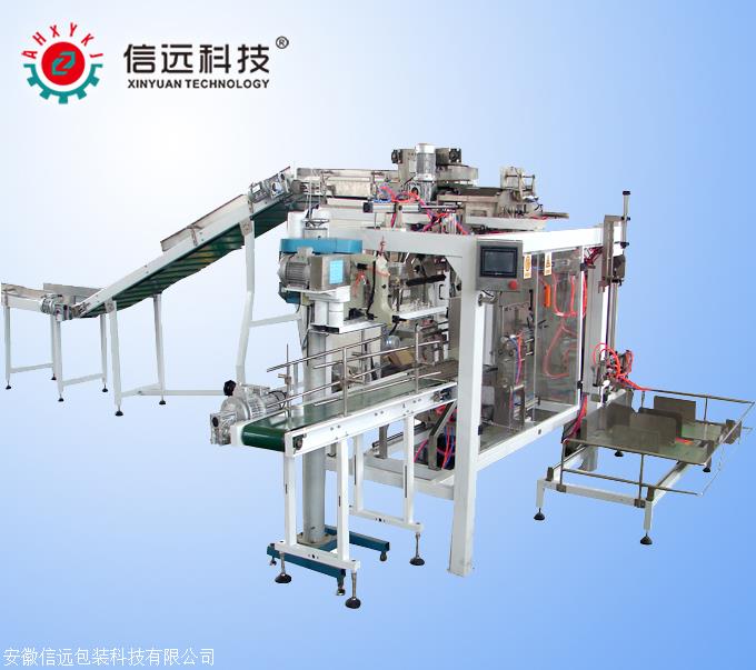 功能:自动完成料包的自动输送、自动给包、自动计数、自动排列、自动充填装箱。