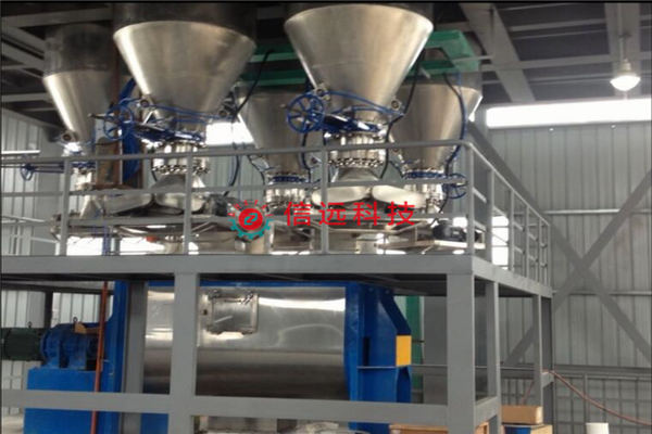 通过开启耐压旋转给料机,物料进入到输送管道,通过罗茨风机出来的气流将物料输送到包装机上方的过度料仓内。可编程控制器的有序控制来实现耐压旋转给料机的合理运行,我方在结合多年的经验以及根据客户的物料特性,再根据现场工况选择合理的开启次数,保证了物料的输送。具体工艺简介:当需要输送时,物料自耐压旋转给料机快速进入输送管道内,周而复始,完成本装置的输送任务。