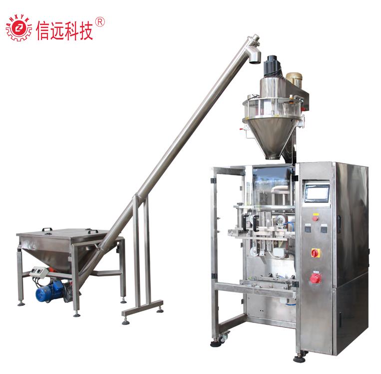 胡椒粉调味品粉剂全自动包装机适合均匀细颗粒、无粘性粉体物料(生物肥、饲料、添加剂、奶粉、农药、等物料)各类粉料、粉剂、粉体的全自动计量包装,可自动完成上料、计量、制袋、包装、封口、打印、计数等整套包装流程,配备自动料位控制,可选配吸尘装置、重量选别机等。胡椒粉调味品粉剂全自动包装机广泛应用于食品、药品、饲料、、化工、添加剂、干燥剂等诸多行业。整机设计符合GMP标准。该机具有计量精度高,包装速度快,无粉尘污染、封口平整无夹粉、袋型美观等特点。亦可选配排气、冲孔等装置实现手拎袋自动制作等功能。针对易扬尘物料可选配可回收除尘系统。机组由计量机、充填机、提升机、输送机这四大部分组成
