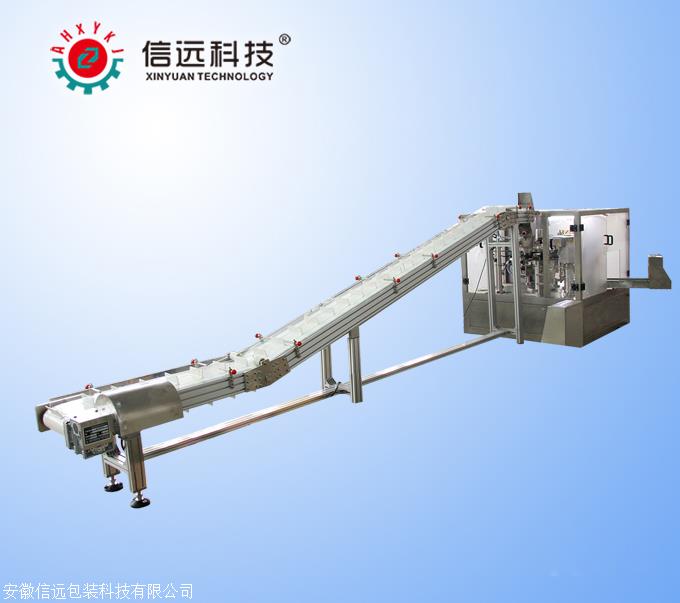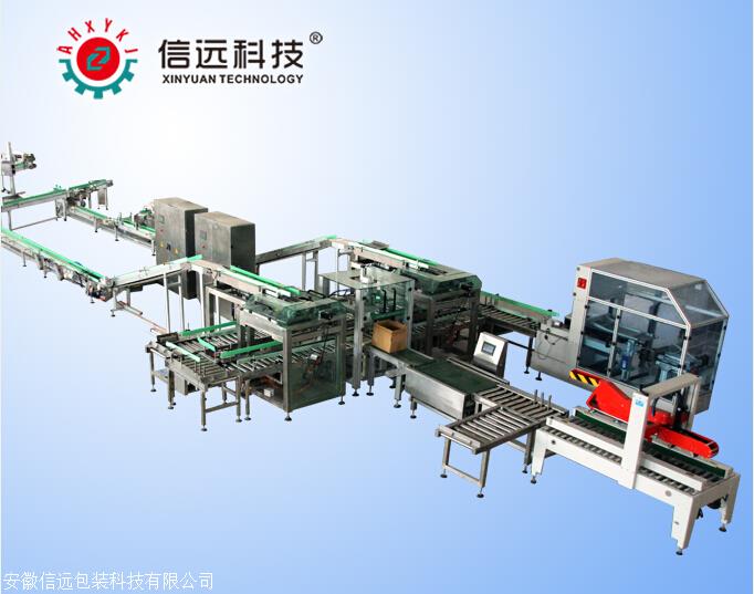 桂林市大量元素水溶肥二次 装箱设备该二次包装机组是完成将包装好的小袋产品(100~1000克)按要求(排列的形式:单仓、多列)整齐有序装入编织袋,自动缝包输出的全自动包装过程。实现从散装物料小包装到编织袋包装的全自动化作业,节约了人力,为客户减少生产成本,也提高了生产效率,该机组广泛用于洗衣粉、、种子、奶粉等粉状、颗粒包装,是各大公司实现后包装全自动化的机器。