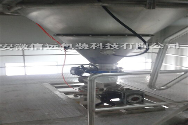 物料自料仓(内设高低限位)→螺旋输送机→包装机暂存仓(内设传感器)→人工上袋→放料→震袋及袋口清扫→排气→内袋热合封口,外袋缝合折边→复秤(含剔除)→人工码垛。物料经包装过程中排出的粉尘经过滤除尘后排放。此生产线采用PLC 控制系统,人机界面,操作简单,安全可靠。
