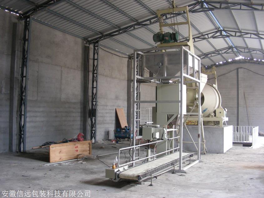 功能:将混合好的肥料自动卸入至包装机料仓,包装秤按照设定的重量将物料充填入包装袋,经输送机送往缝包机工位,自动缝包,完成定量包装过程。设备配置:料仓及其支承架1组、DCS-50KW型定量包装秤1台、输送机1台、自动缝包装置1台。