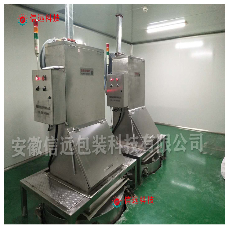 以上功能即可以全自动联动运行,也可以整体手动或分工序手动运行。工艺流程:粉剂→投入上料斗→真空上料机自动提升→中间过渡料仓→卧螺旋给料机自动加料至螺旋计量机锥形料仓(料位自动控制)→立式螺旋计量→自动制袋、充填→自动排气→自动热封口、分切→重量检测、不合格包排出→成品输出至外包间。原材料投料工位采用单点式除尘,无粉尘外溢及流失。配料系统采用静态矢量称重方式,采用进口称重模块,保证称重精度。混合机采用方锥混合机,物料在机内进行三维运转掺混,小料配备预混机,混合效率高,均匀度高。旋转式混合机(方锥混合机)对接方式采用自动对接机构,增加工作效率,不需人工干预。配置多个移动式成品仓。便于产品检测,提高生产效率。