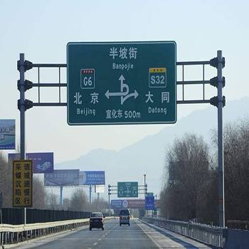 一座好的道路交通标志杆,杆体全部采用热镀锌,可保20年不生锈。交通标志牌的支撑方式分为柱式(单柱式和双柱式)、悬臂式(L 型、T 型、F 型)单悬杆、双悬杆 、门架式和附着式等。