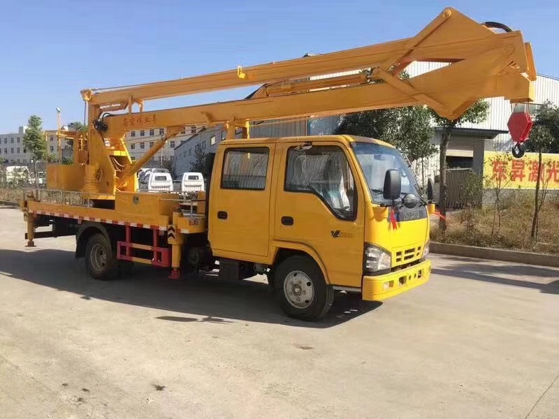 高空作业车还在作业斗内和回转座上均设有操纵装置, 远距离控制发动机的启动/停止、高速/低速,采用电液比例阀控制臂的动作,平稳性好,工作臂可左、右连续旋转,靠连杆机构自动维持作业槽水平,主泵出现故障时可操纵应急泵下降作业槽,具备夜间照明,可起吊重物。车的支腿单独分开、可调、能实现整车在不平路上调平。整车移动方便,能适合狭窄的地段、小街小巷作业。14米蓝牌高空平台车打折优惠 国六双排座高空作业车价格 平台升降车产品被广泛用于电力、路灯、市政、园林、通信、机场、造(修)船、交通、广告、摄影等高空作业领域。