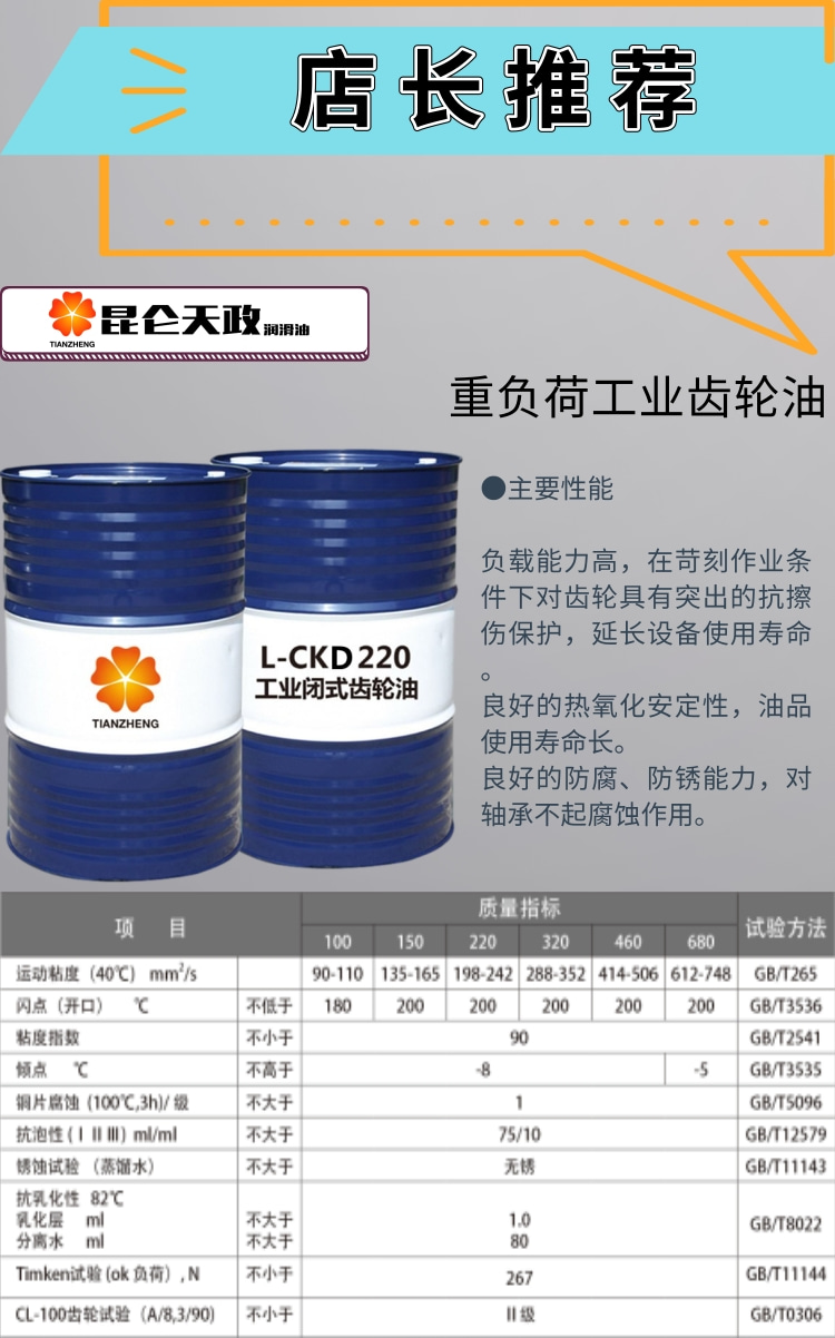 重负荷齿轮油可替代蜗轮蜗杆油、中负荷齿轮油及传统的重负荷齿轮油,减少用油品种。推荐用于塑料行业的挤出机齿轮箱、水泥矿山行业的大型变速箱、港口重型起重设备齿轮箱、钢铁行业的大型油浴式齿轮装置等。