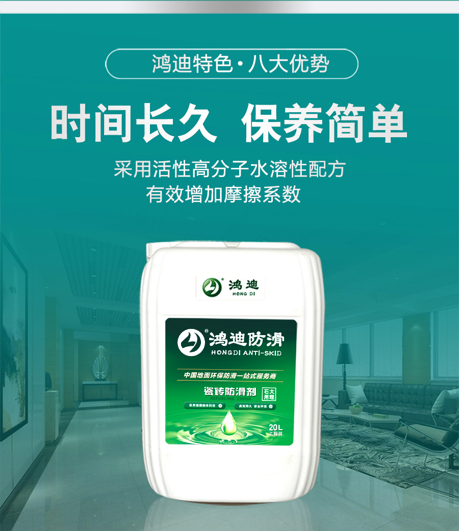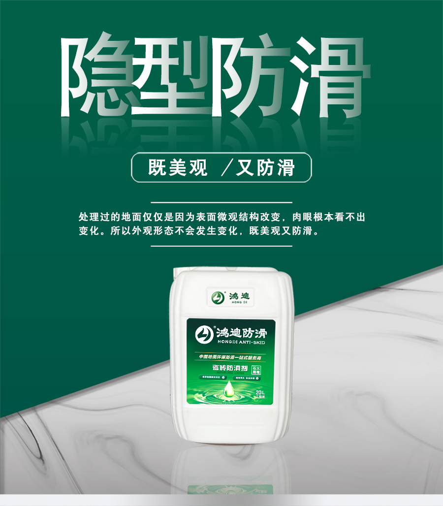 品牌:鸿迪防护,洗手间防滑是采用德国纳米技术,使用防滑剂后能够在地砖表面潮湿时有效增加摩擦系数,防止滑倒,经防滑处理后的地面瓷砖或地面石材磨擦系数大大增加。干燥时,可起到防滑作用,遇水后防滑效果呈倍数提高。防滑剂适用于各医院、敬老院、学校、办公楼、银行、酒店、游泳池、健身场所、商场、超市、步行街、机场、车站、火车站、地铁站等各种亲水型地砖的防滑处理。