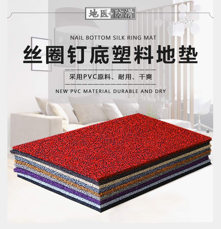 品牌:地医防护,钉底丝圈防滑地垫采用优质材料制成,经专业团队设计生产操作,确保每一道工序都经过严格把关,生产出的防滑垫具有较好的防滑效果,耐磨耐用、抗踩踏不变形、使用长久、柔韧性强、撕拉不断裂、任意折叠裁剪不散边不卷边、颜色齐全、可任意定制尺寸及图案满足客户的各种需求,防滑垫可适用于各种场所:卫生间、餐厅、酒店大厅、走廊、楼梯、淋浴间、游泳池、家用门口、宴席大厅、场地活动、室外活动、 店铺门口、洗手间地面、卧室门口、厨房地面、阳台、等场所。